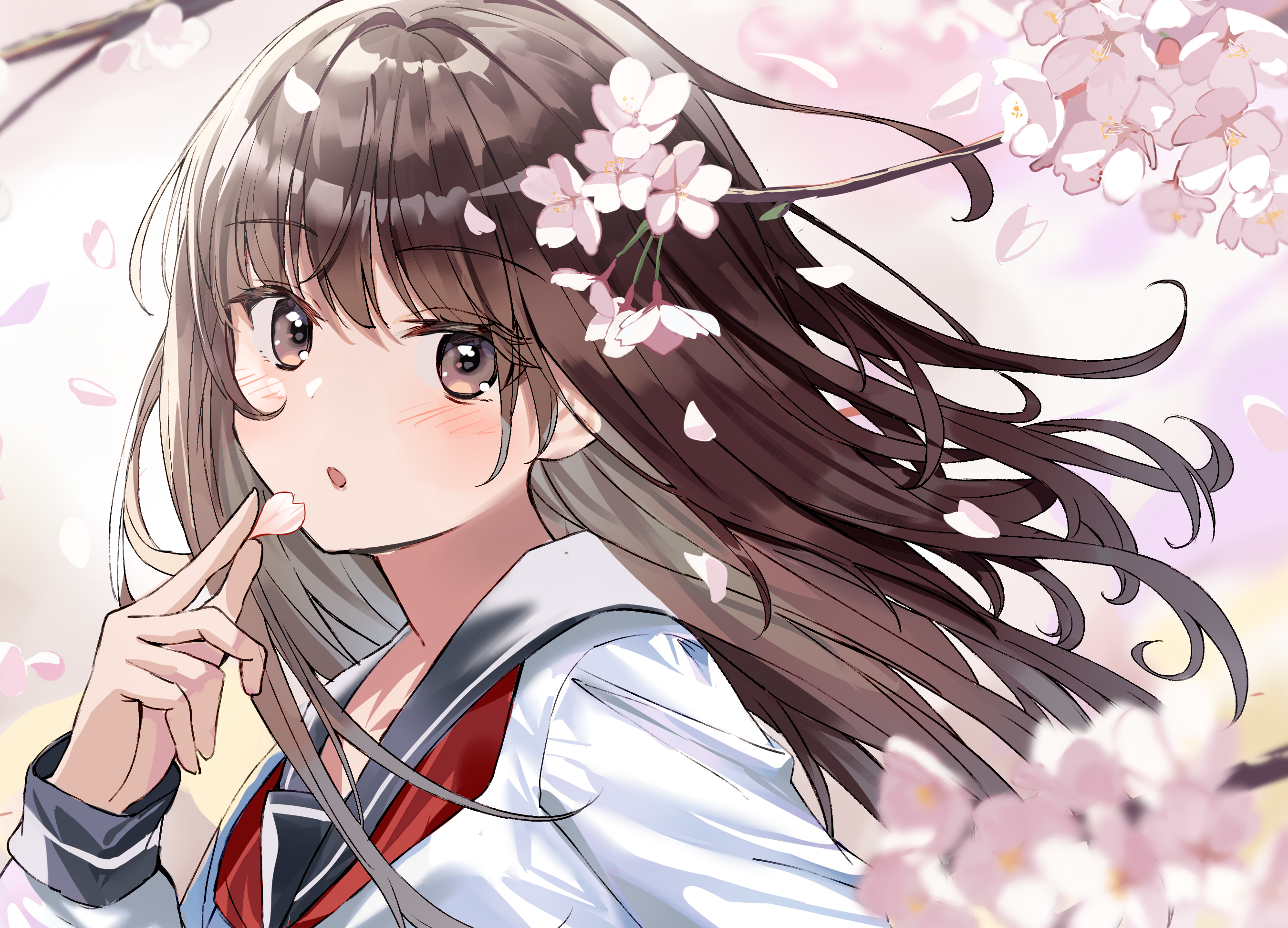 Pid:89829370女孩子 水手服 樱 长发 视线 花和女孩子