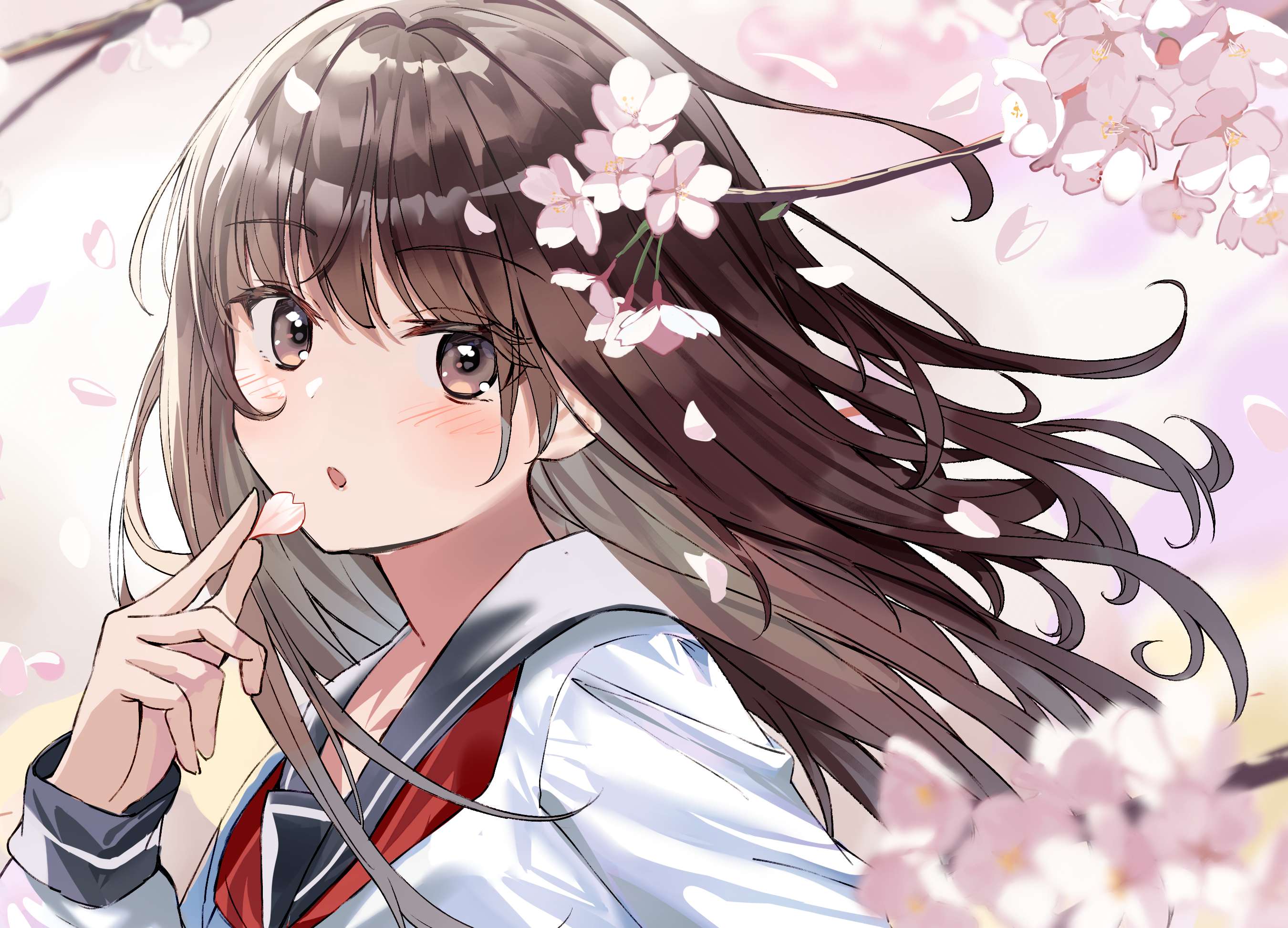 女孩子 水手服 樱 长发 视线 花和女孩子
