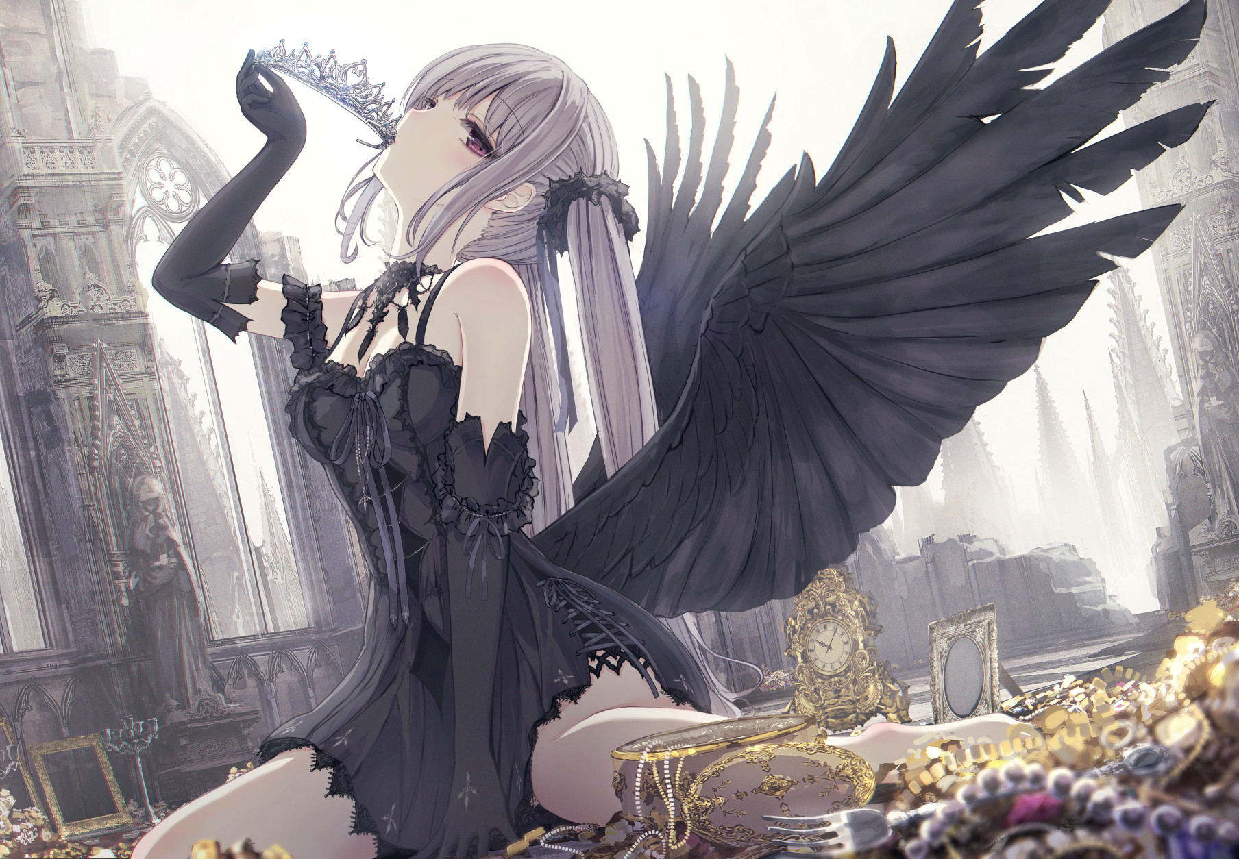 女孩子 黑色连衣裙 双马尾 鸭子坐 拟人化