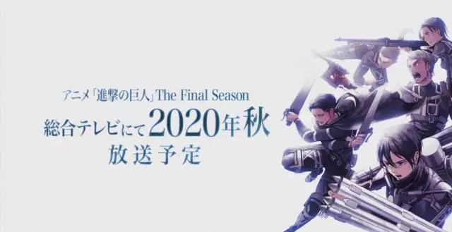 根据日本人气漫画家谏山创原作漫画改编的同名TV动画《进击的巨人 The Final Season》将于2020年秋季在日本NHK综合台播出。
