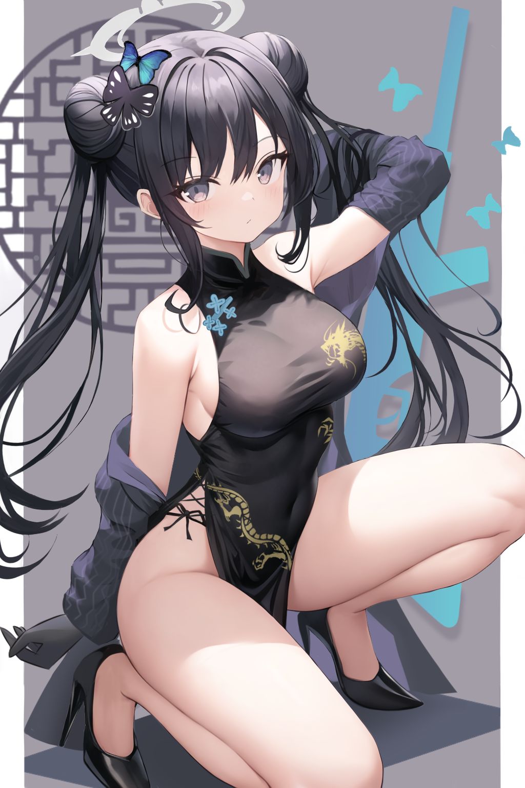 Pid:104936283妃咲 碧蓝档案 旗袍 可爱双马尾 黑发