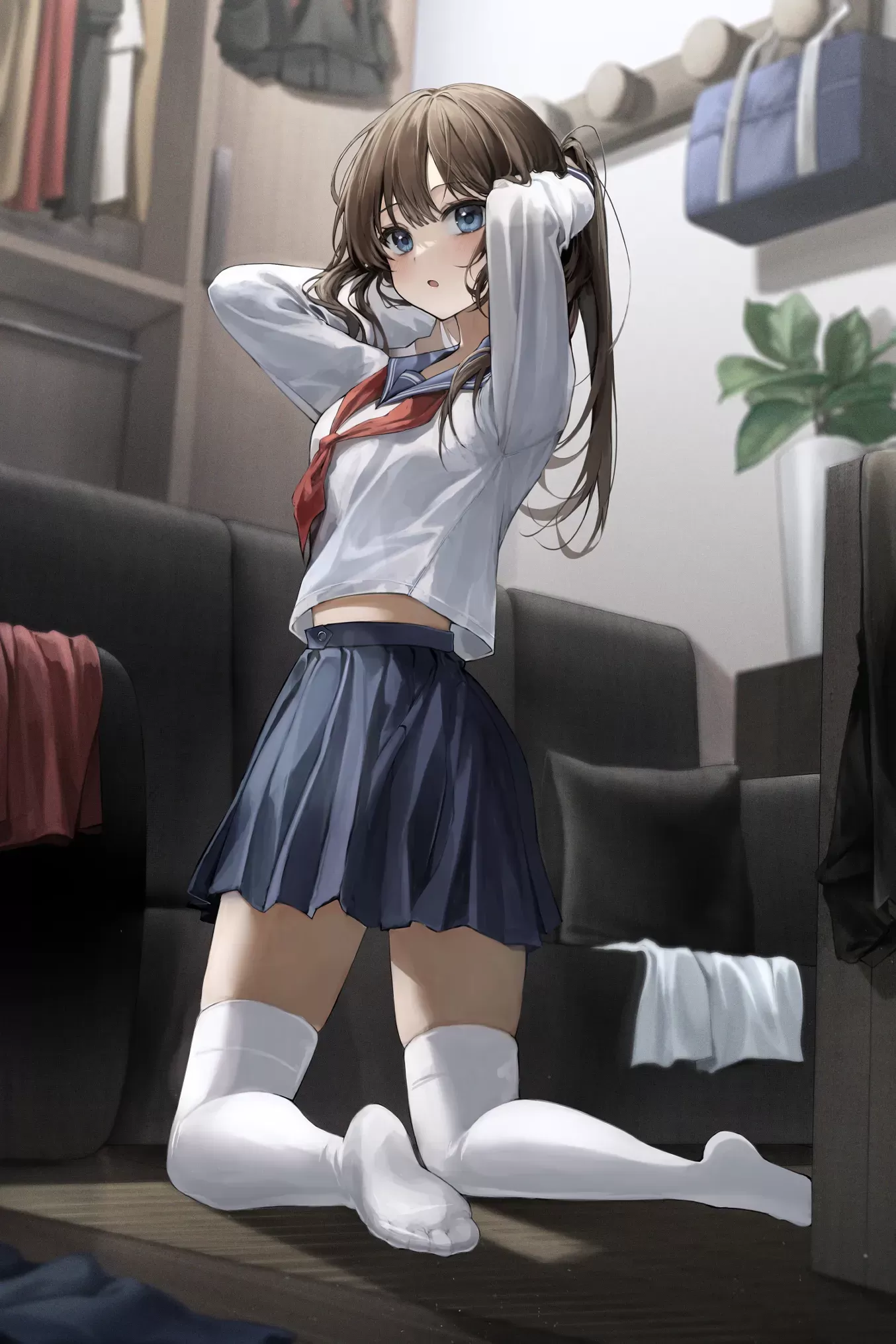 少女 水手服 长发