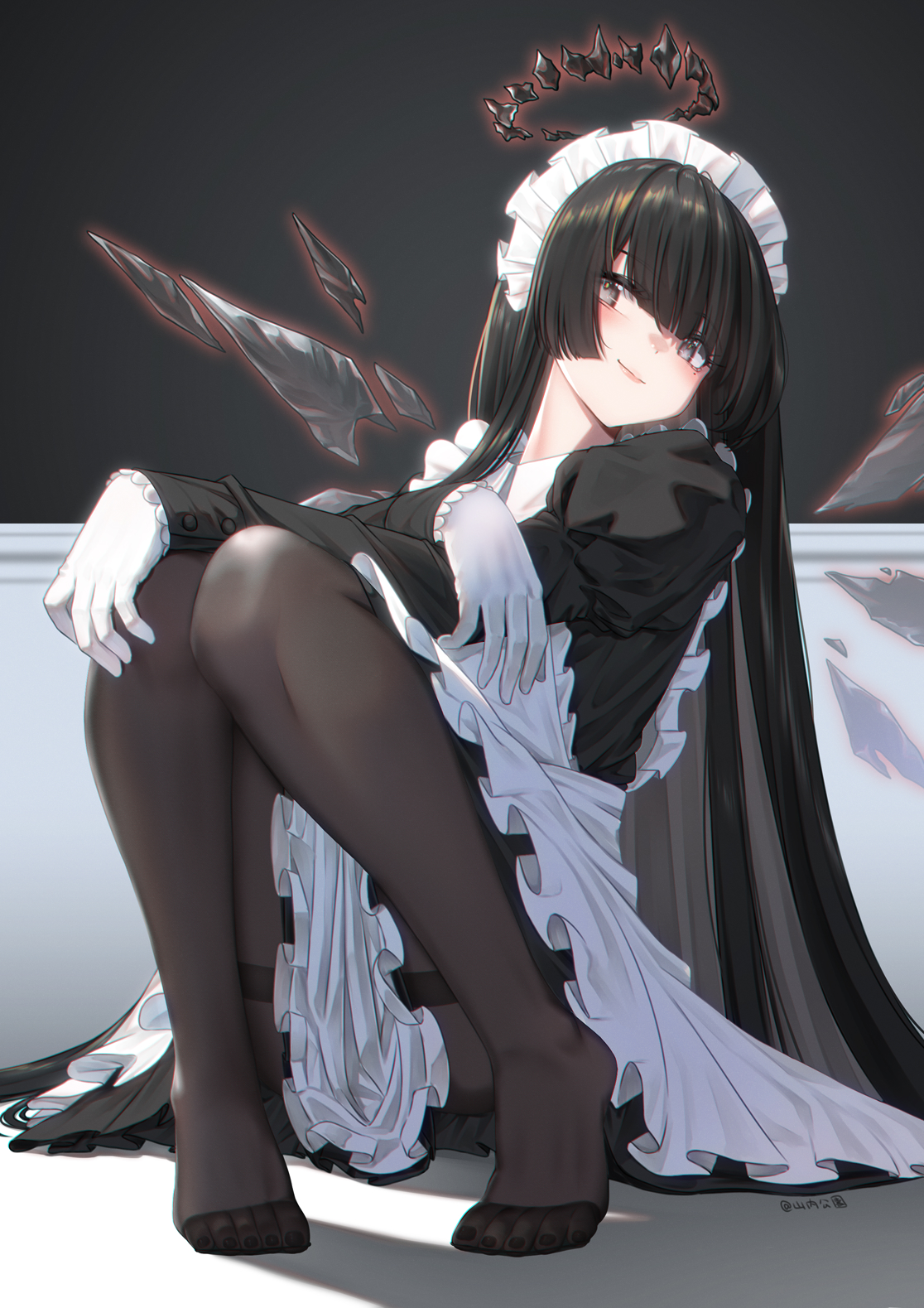 明日方舟 塑心(明日方舟) 女仆 赤脚 脚指 黑裤袜 着袜足底