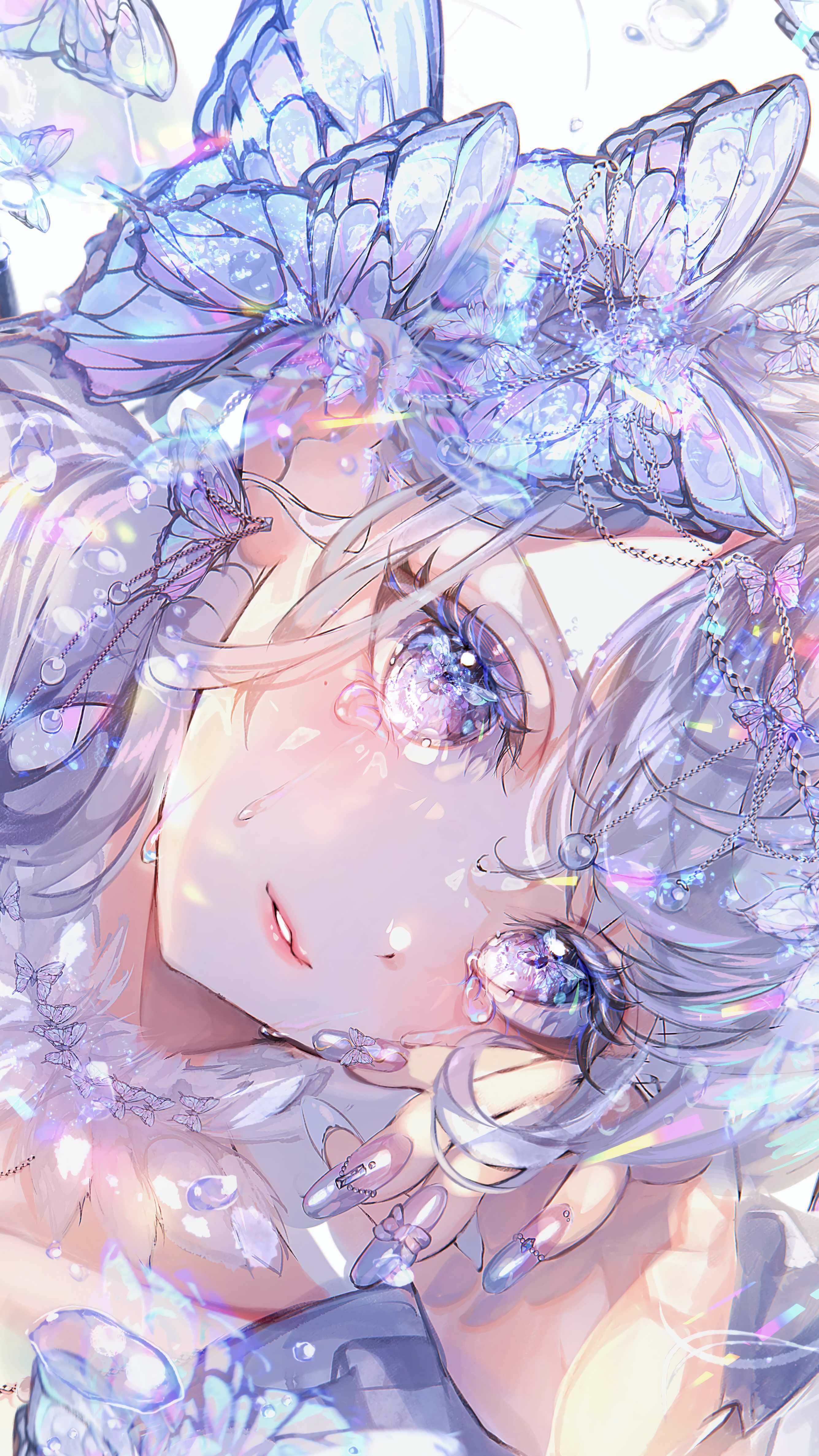 Pid:123412631蝴蝶 裙子 女孩子 美甲 麻花辫 白发