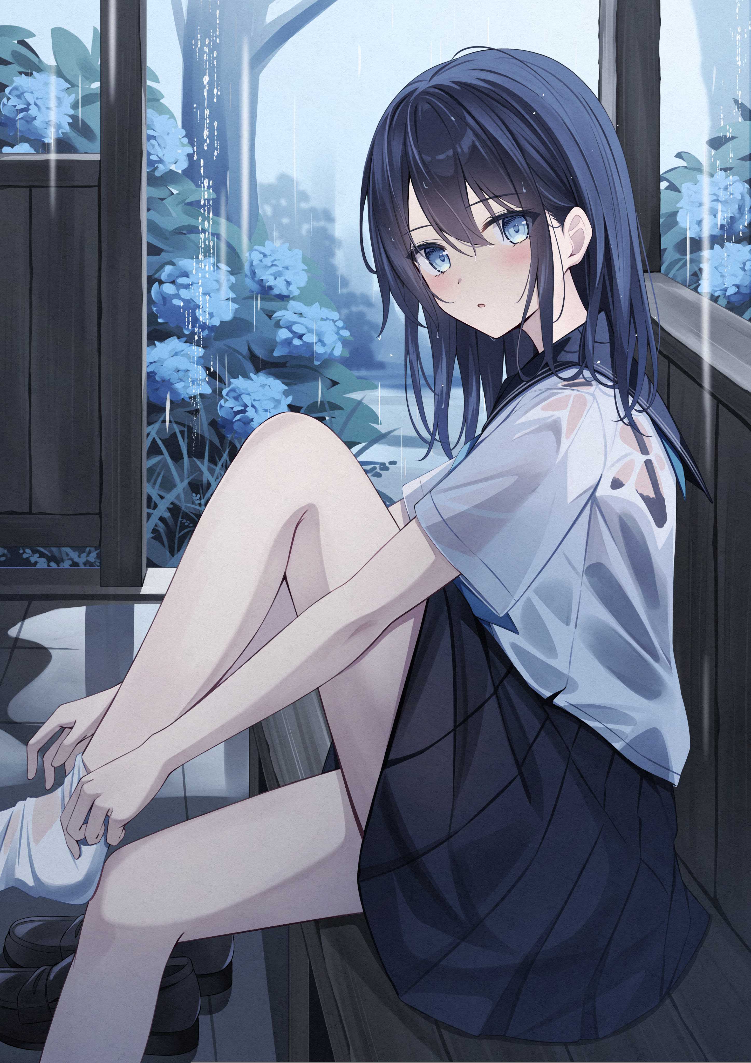 女孩子 水手服 黑发 紫阳花